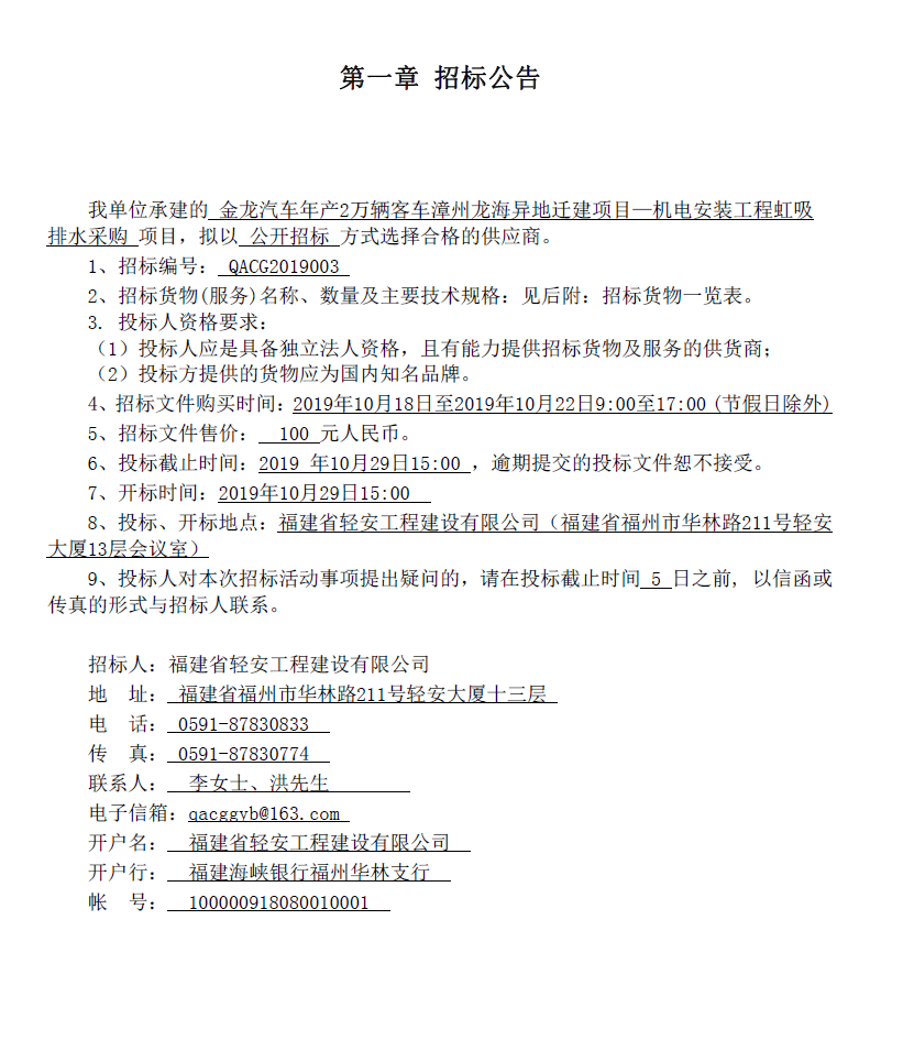 金龍汽車年產2萬輛客車漳州龍海異地遷建項目—機電安裝工程虹吸 排水采購
