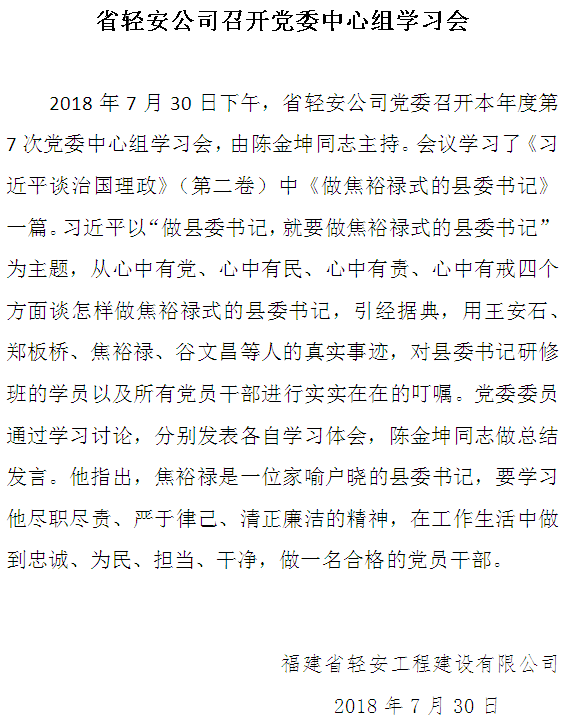 省輕安公司召開黨委中心組學習會