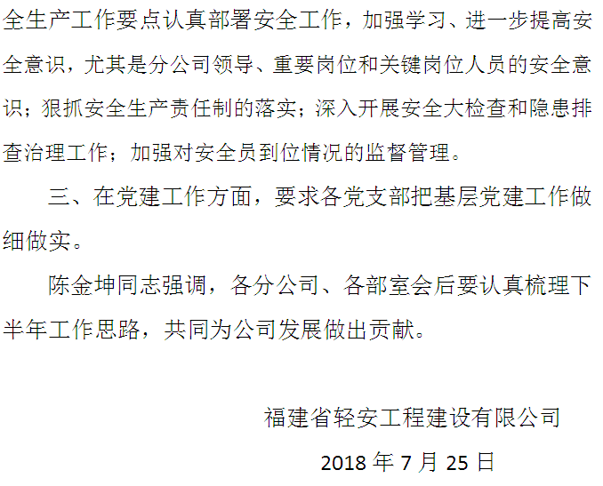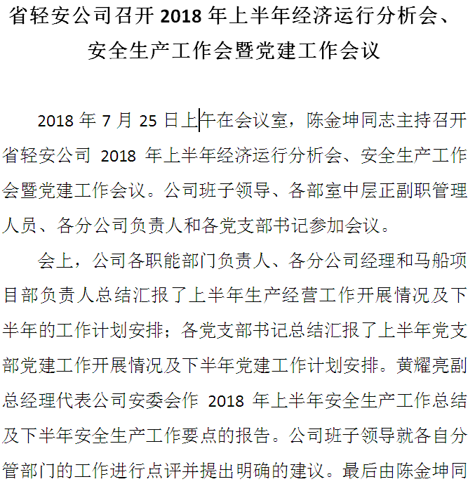 省輕安公司召開2018年上半年經濟運行分析會、 安全生產工作會暨黨建工作會議