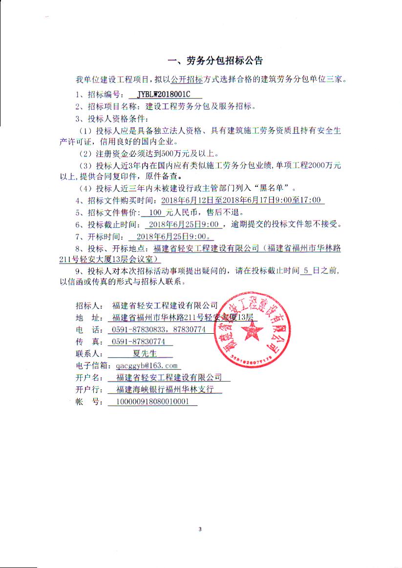 勞務分包招標公告