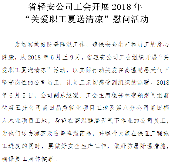 省輕安公司工會開展2018年 “關愛職工夏送清涼”慰問活動