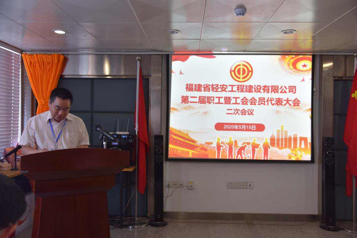 2020年5月15日上午,福建省輕安工程建設有限公司召開第二屆職工代表暨工會會員代表大會二次會議。會議由工會主席陳友立主持,共有35名職工代表參加。